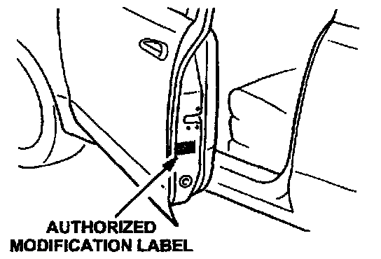2. Check vehicle for Authorized Modification Label # 91007 attached to the driver side door. Refer to illustration.
