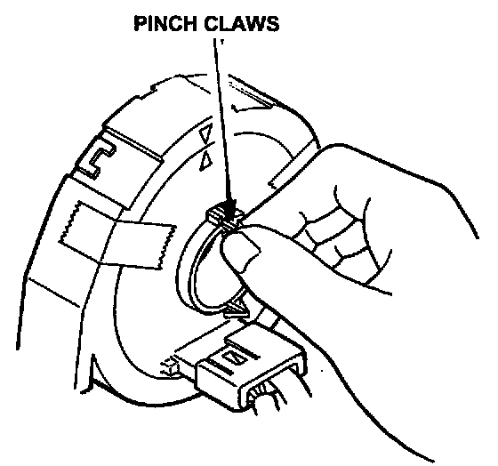6. Remove the three (3) screws as shown and pinch the two (2) claws together to remove the clock spring. Refer to the illustration.