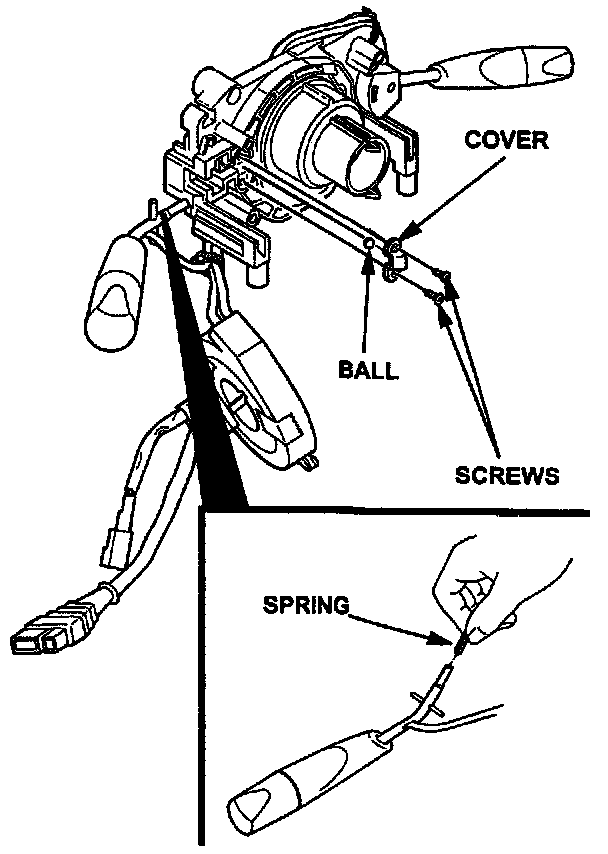 ^ Be sure to hold the cover down with your fingers while removing the headlight switch screws. A ball bearing and spring relocated under the cover. These items must be reused.