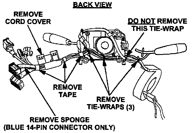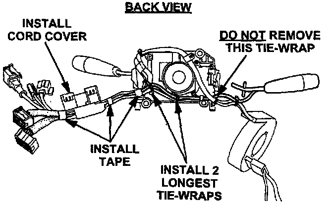 ^ When installing the column covers, be sure the wire harness is not pinched between the top and bottom halves.