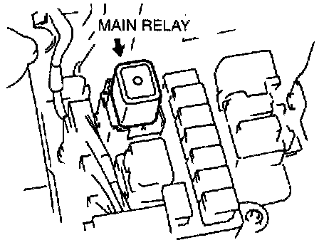 1. Verify that the main relay clicks when the ignition switch is turned to ON and OFF.