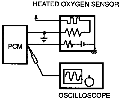 INSPECTION USING AN OSCILLOSCOPE- Trouble detection by heated oxygen sensor output pulse.