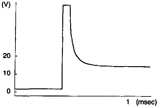 - When normal: Counter electromotive voltage A, generated when the three-way solenoid valve or the fuel injector is turned off from on, shows irregular convergence because induced electromotive voltage B, generated by the plunger return operation, is added to it.