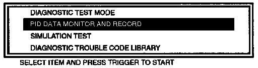 - Select the PID/DATA MONITOR AND RECORD function.
