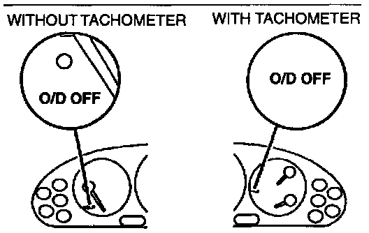 2. Verify that the O/D OFF indicator light is not illuminated. Depress the O/D OFF switch and verify that the O/D OFF indicator light illuminates.