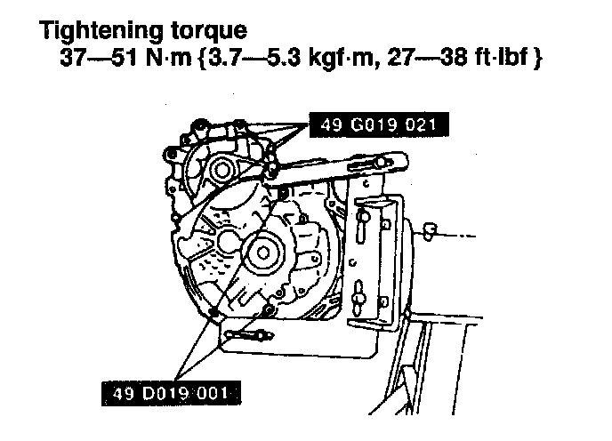 38 - 51 Nm (3.8 - 5.3 kgf m, 28 - 38 ft-lbf)