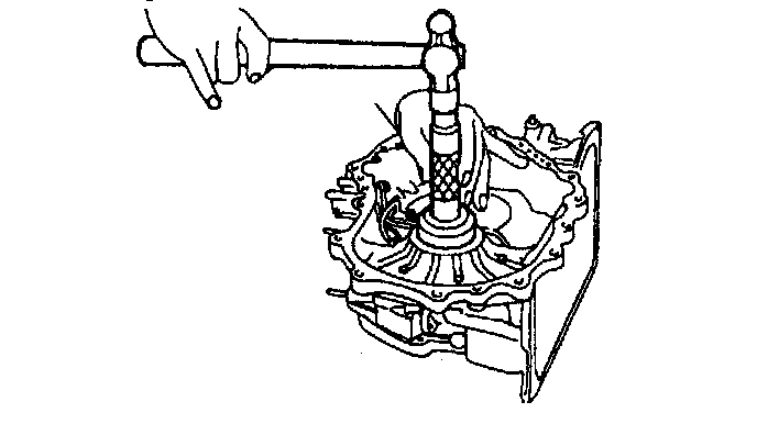 16. Install the required adjustment shim(s) and tap the bearing race into the transaxle case.