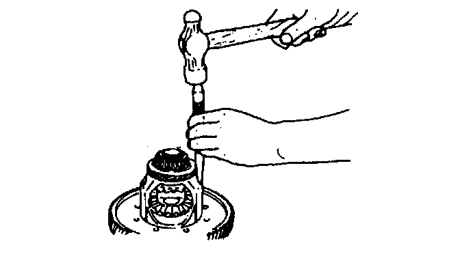 2. Insert a 2.0 mm (0.07 in) punch into the roll pin hole from the ring gear side, and remove the roll pin.