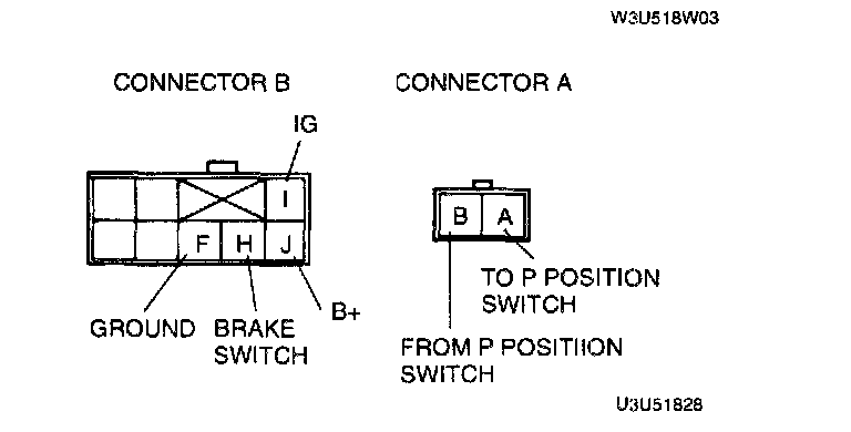 4. If not as specified, repair the wiring harness and/or replace the shift-lock actuator.