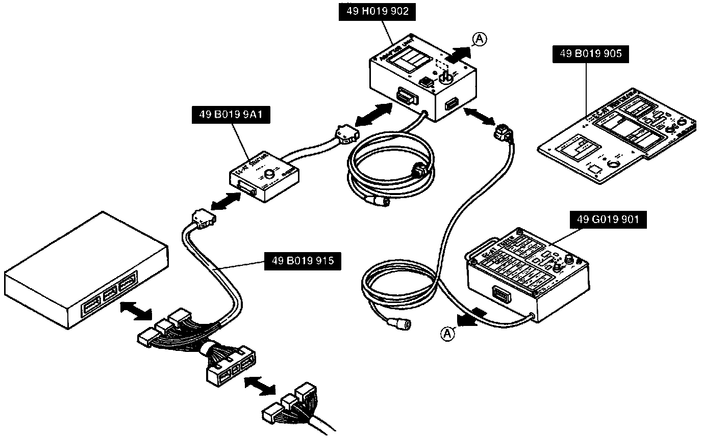 Assembly of SST EC-AT tester (49 G019 901), adapter (49 H019 902), and adapter (49 B019 9A1):