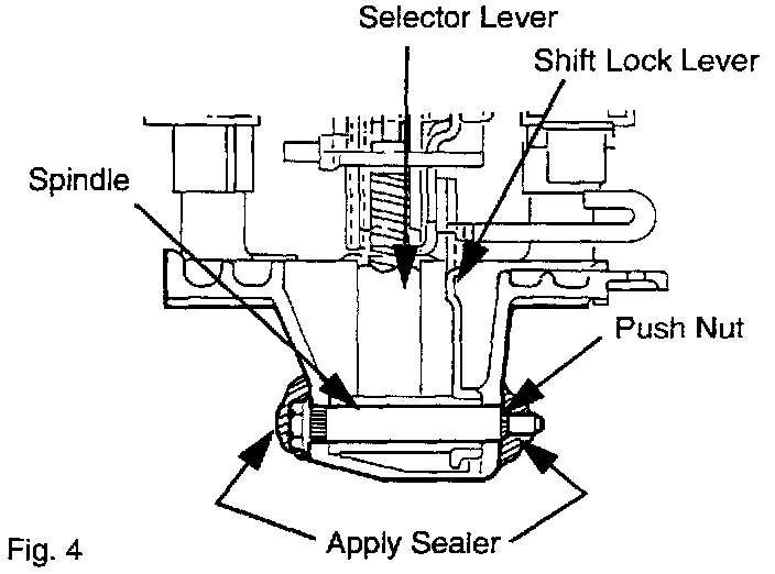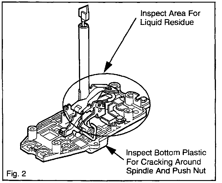 6. Inspect the bottom plastic portion of the shift lever for cracks. Fig. 2