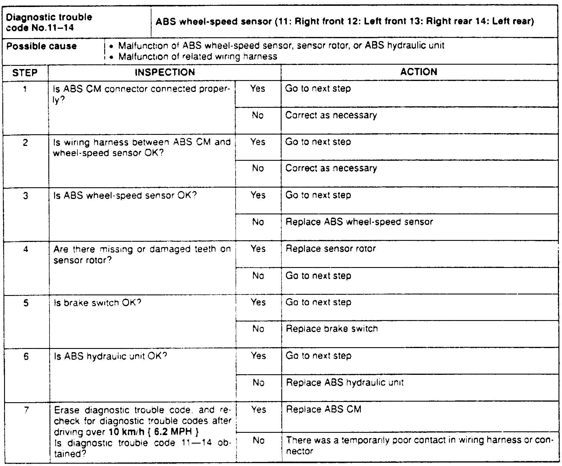 Fig. 52 Codes 11,12,13 & 14: ABS Wheel Speed Sensor: