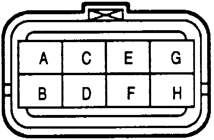 3. On Millenia models, disconnect ABS hydraulic unit 8-pin connector, Fig. 119, then measure resistance between terminals A and E, B and F, C and G and, finally, D and H.