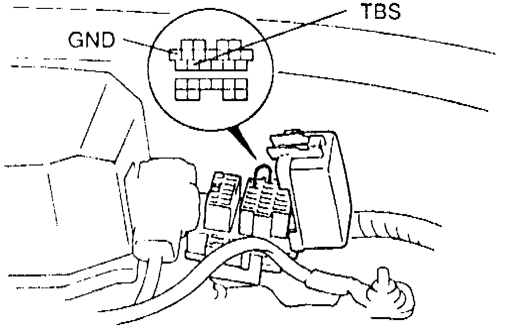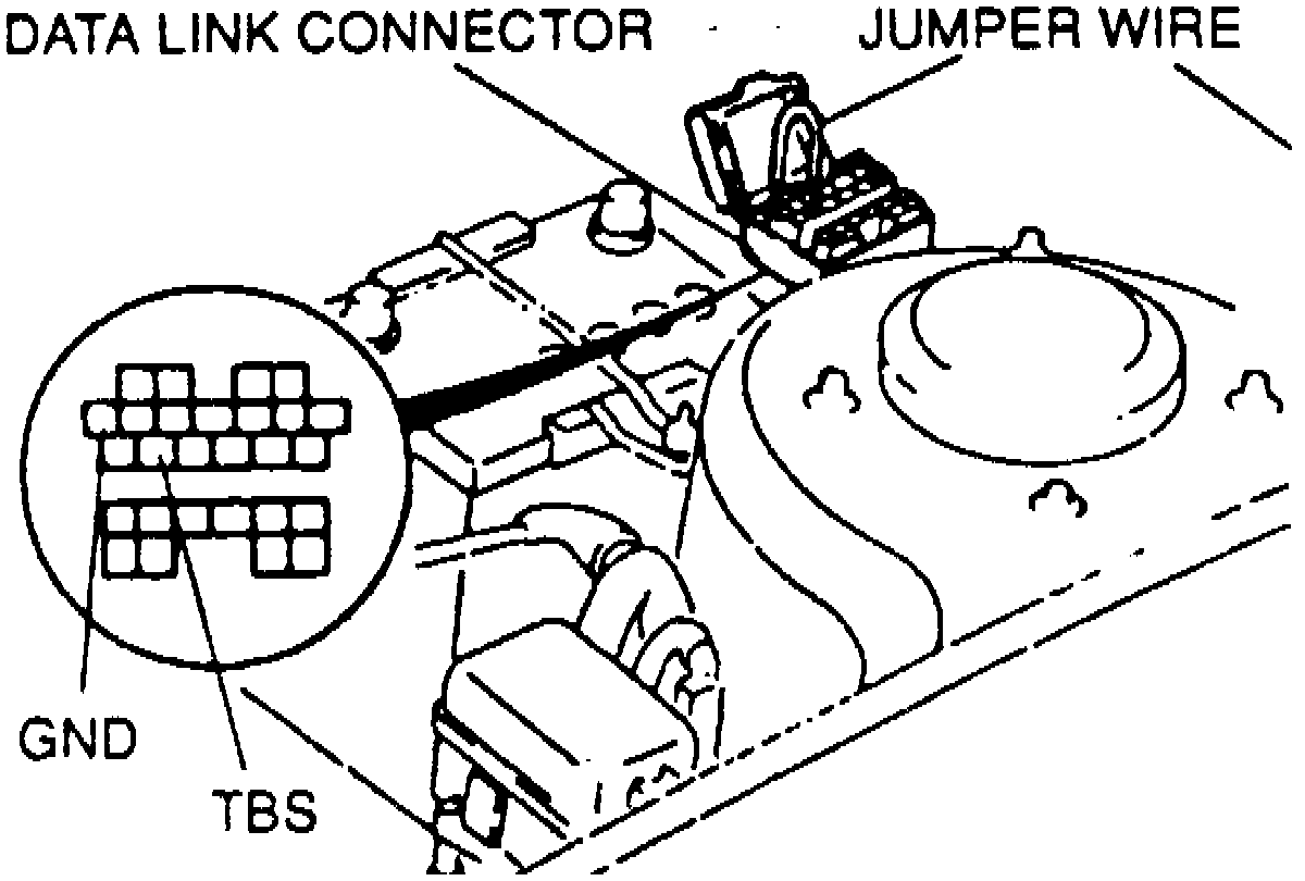 4. Using a suitable jumper wire, connect diagnostic connector TBS terminal to ground, Fig. 16 and 21.