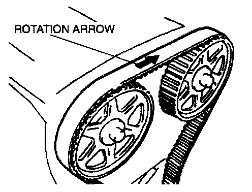 16. Pull the tensioner in the direction of the arrow until the timing belt is slack and remove the timing belt.