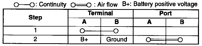 Check for air flow between ports of the solenoid valve.