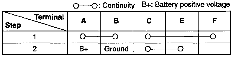 2. Apply battery positive voltage as per image and check continuity between terminals of the cooling fan relay by using ohmmeter.