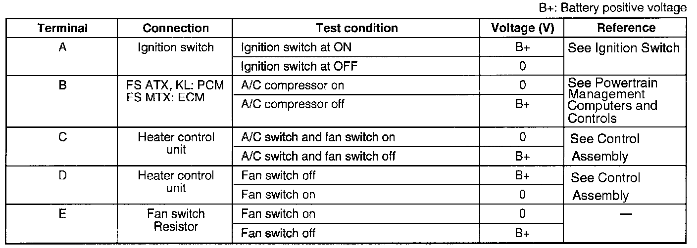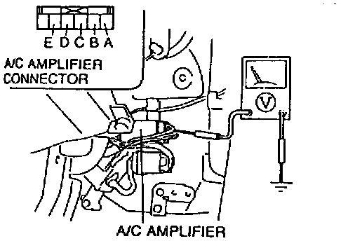 Measure the voltage at each terminals of the A/C amplifier connector.