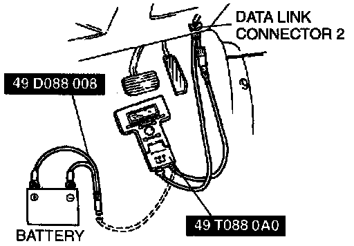 1. In the passenger compartment, connect the SST to the data link connector 2 as shown in the figure.