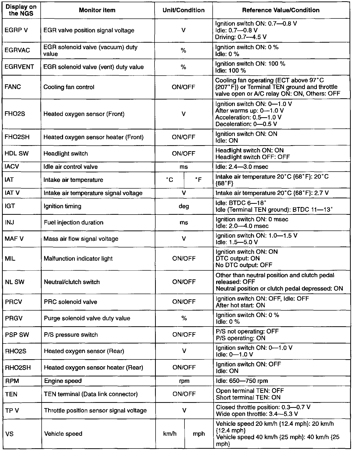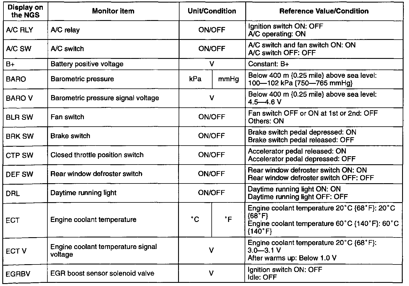 5. Carry out inspection referring to PID/DATA MONITOR table.