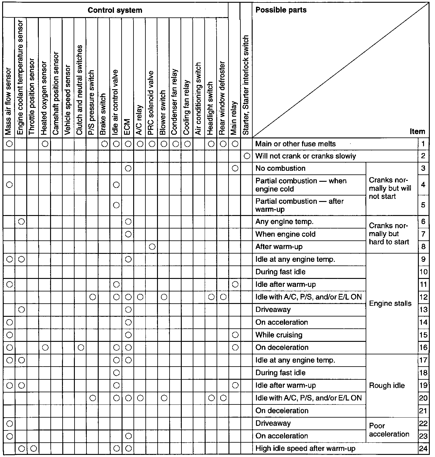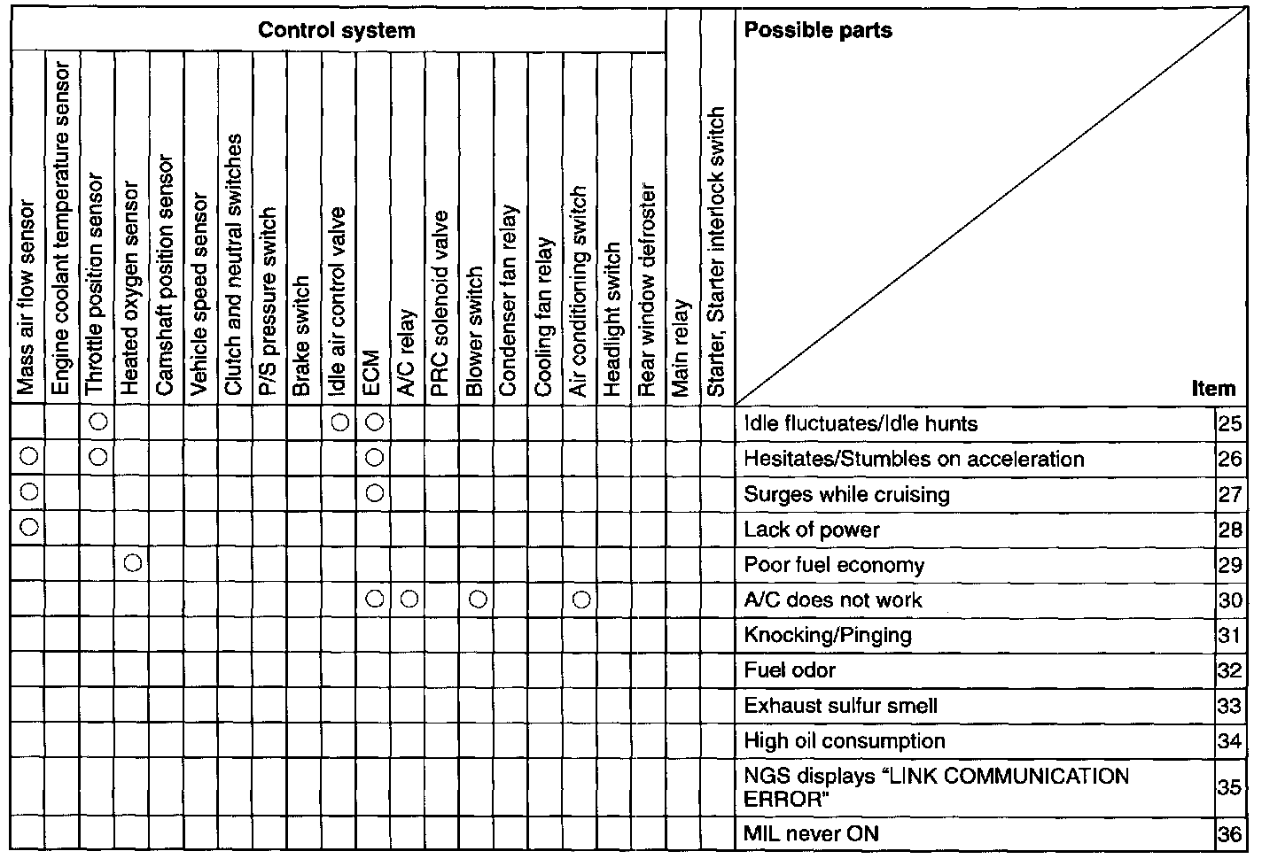 NOTE: These Quick Diagnosis Charts show the relationship between troubleshooting items and inspection points.