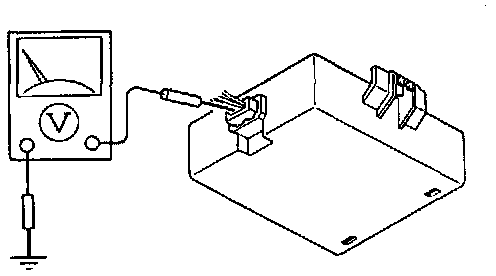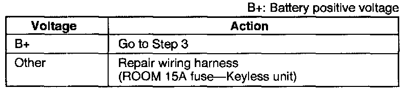 2. Measure the voltage at the (L/R) terminal wire of the keyless unit connector in the trunk compartment