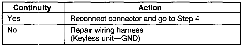 1. Disconnect the keyless unit connector.