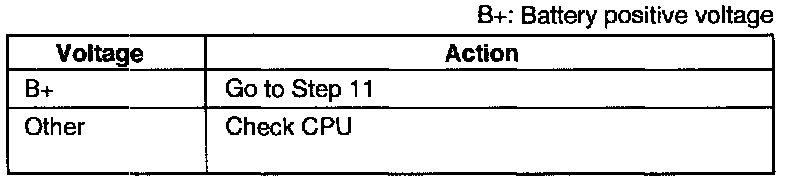 Measure the voltage at terminal wire 20 (LG/R) of the CPU connector.