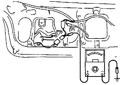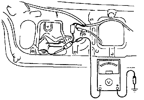 2. Measure the voltage at the (W/G) terminal wire of the trunk lid opener relay connector.