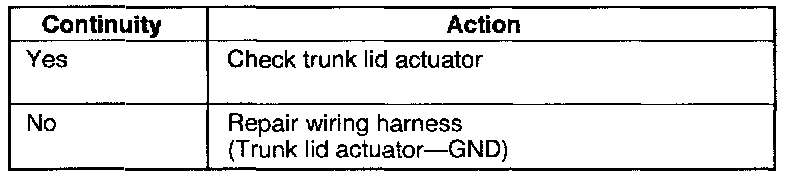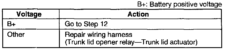 Measure the voltage at the (LG/R) terminal wire of the trunk lid actuator connector.