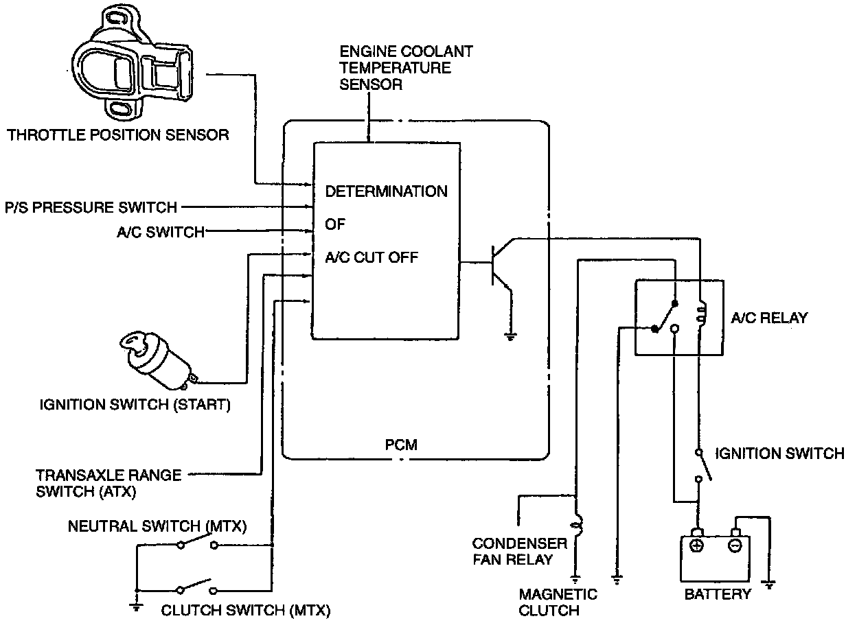 An A/C cut off system is used to improve idle smoothness immediately after starting the engine and to improve acceleration performance.