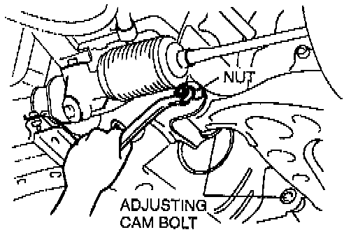 2. Turn the front and rear adjusting cam bolts the same amount in the opposite direction to provide the correct camber angle.