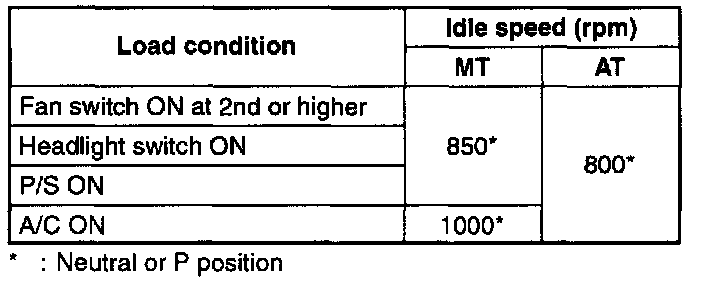 NOTE: Excludes temporary idle speed drop just after the electrical loads are turned on.