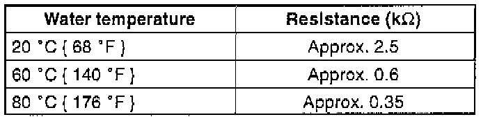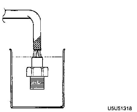 2. Place the transmission fluid temperature sensor in water with a thermometer as shown and heat the water gradually.