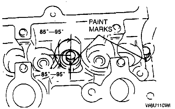Using the marks as a reference, tighten the bolts by turning each 85° - 95° in the sequence shown.