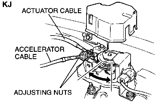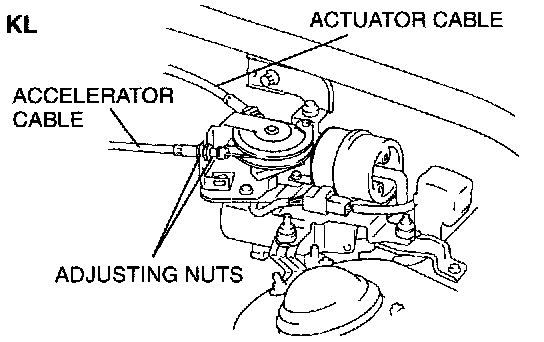 2. Adjust the accelerator cable adjusting nut to no play the actuator link.