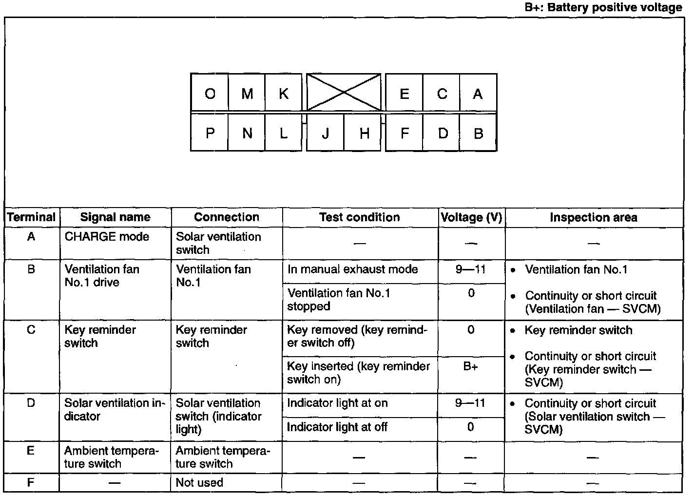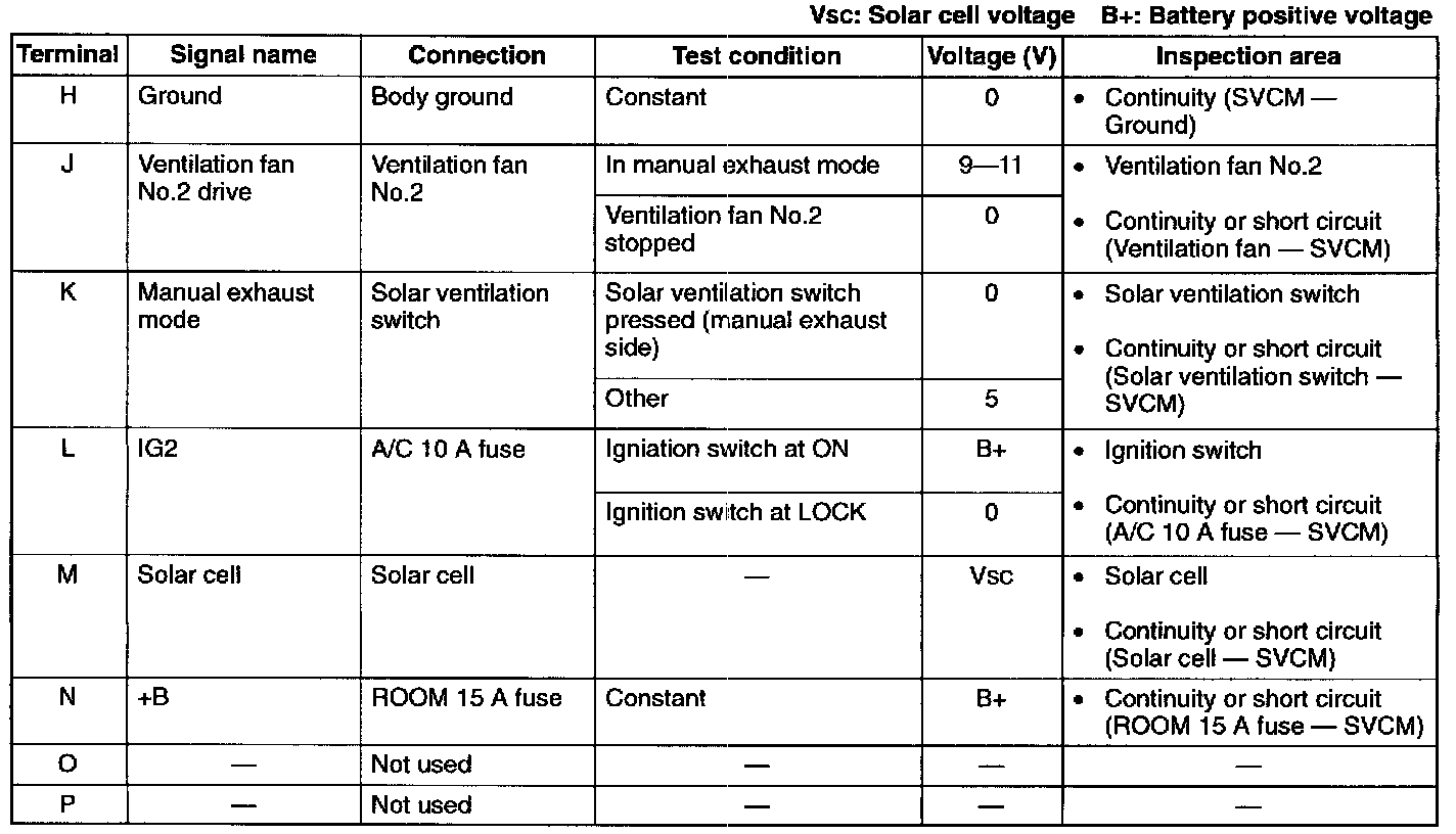 1. Measure the voltage at the terminal wires of the SVCM connector.