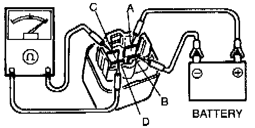 2. Apply battery positive voltage and check continuity between terminals of the relay by using an Ohmmeter.