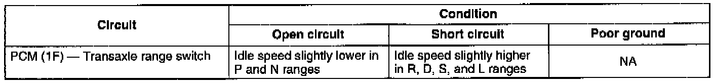 - If the circuit is shorted, the idle speed will be slightly high in R, D, S, and L ranges.
