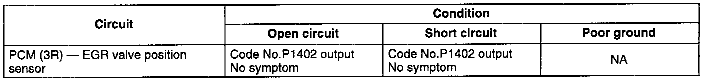 - If the EGR valve position sensor or circuit has an open or short, diagnostic trouble code No.P1402 is output.