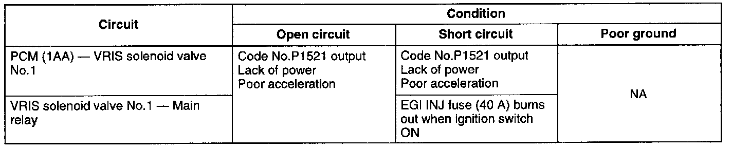 - If the solenoid valve or circuit has an open or short, diagnostic trouble code No.P1521 is output.
