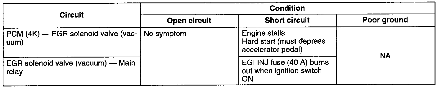 - If the circuit is shorted, the EGI INJ fuse (40 A) will burn out.