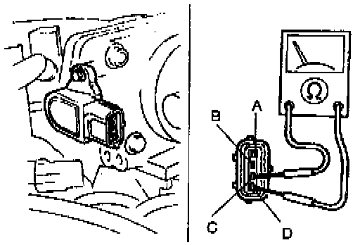 3. Check for continuity between throttle position sensor connector terminals C and D by using an ohmmeter.
