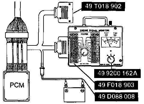 1. Check the mass air flow sensor for damage and cracks.2. Connect the Special Service Tools (Engine Signal Monitor) to the PCM.