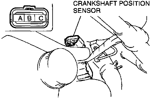 1. Disconnect the crankshaft position sensor connector.2. Measure the resistance between terminals A and B by using an ohmmeter.