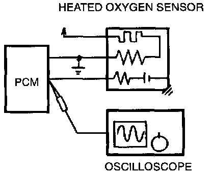 Inspection Using an Oscilloscope1. Trouble detection by heated oxygen sensor output pulse.