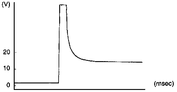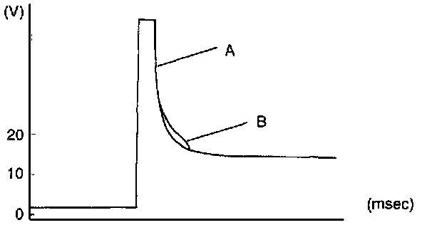 - Counter electromotive voltage A, generated when the three-way solenoid valve or the fuel injector is turned off from on, shows irregular convergence because induced electromotive voltage B, generated by the plunger return operation, is added to it.