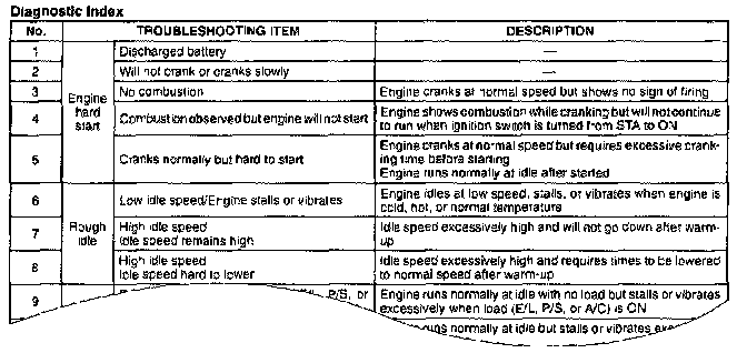 - The diagnostic index is for quick reference of all trouble symptoms in the symptom troubleshooting.