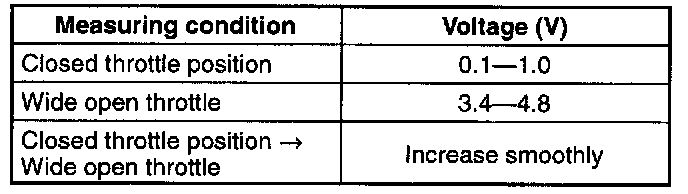 5. If not as specified, inspect the throttle position sensor harness.