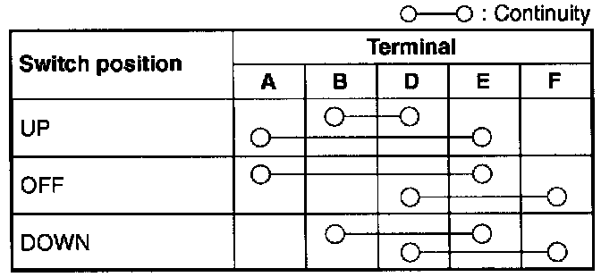 Check for continuity between the power window subswitch terminals by using an ohmmeter: